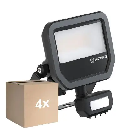 Descrizione Confezione Multipack 4x Ledvance Proiettore LED Aluminium Nero 17W 2200lm 100D - 830 Luce Calda - | IP65 - Sensore di Movimento e Luce - Simmetrico