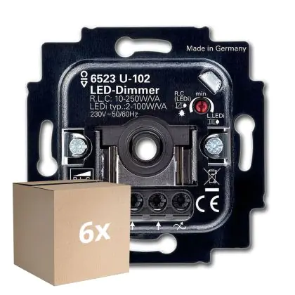 Confezione Multipack 6x Busch-Jaeger 6523U-102 Rotary Dimmer LED 6512-0-0334 2W -100W 50/60Hz
