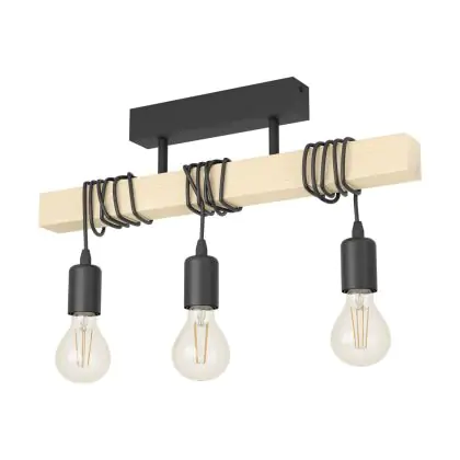 Eglo Luce da soffitto Townshend Acciaio Legna Nero Marrone | IP20 - Adatto per 3x E27