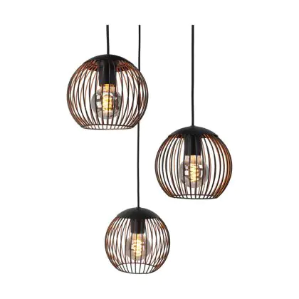 Eglo Luce Pendente Almanzora Acciaio Nero Rame | IP20 - Adatto per 3x E27