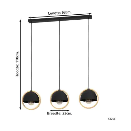 Eglo Luce Pendente Callow Acciaio Legna Nero Marrone | IP20 - Adatto per 3x E27