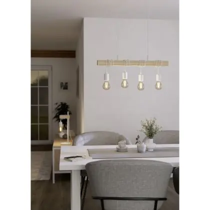 Eglo Luce Pendente Townshend Acciaio Bianca | IP20 - Adatto per 4x E27