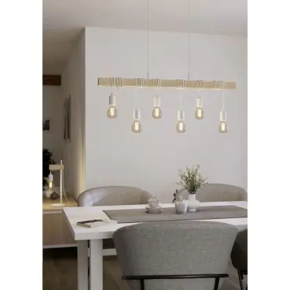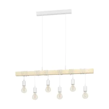 Eglo Luce Pendente Townshend Acciaio Bianca | IP20 - Adatto per 6x E27