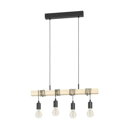 Eglo Luce Pendente Townshend Acciaio Legna Nero Marrone | IP20 - Adatto per 4x E27