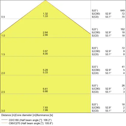 Apertura del fascio luminoso a 120°
