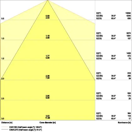 ![]() Il codice colore è una combinazione di resa cromatica (CRI) e colore della luce (Kelvin). La prima cifra indica la resa cromatica (1 = resa del colore molto bassa, 9 = massima resa del colore), mentre la seconda e la terza si riferiscono al colore della luce. Esempio: il codice colore 830 indica una buona resa cromatica (8) e luce bianca calda (3000K). |
