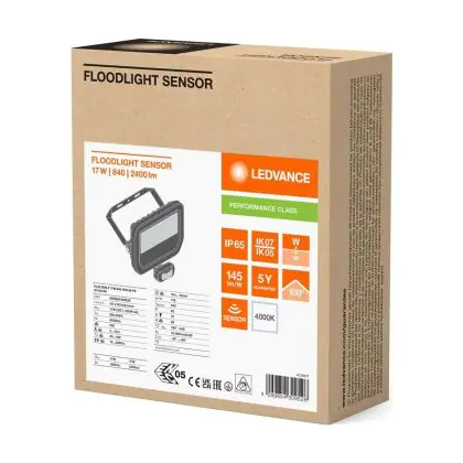 Descrizione Ledvance Proiettore LED Aluminium Nero 17W 2400lm 100D - 840 Bianco Freddo | IP65 - Sensore Di Movimento E Luce - Simmetrico