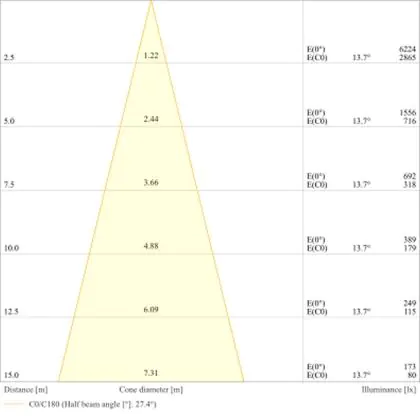 L'apertura del fascio luminoso indica l'angolo del fascio di luce proveniente da una lampada o lampadina. Si misura in gradi (D) e più piccolo è l'angolo, più piccola è l'apertura del fascio di luce.