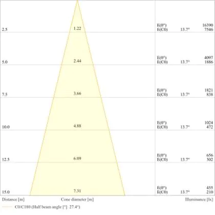 L'apertura del fascio luminoso indica l'angolo del fascio di luce proveniente da una lampada o lampadina. Si misura in gradi (D) e più piccolo è l'angolo, più piccola è l'apertura del fascio di luce.
