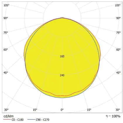 Questo apparecchio può essere usato sia in spazi interni che in spazi esterni, poiché ha indice di protezione contro l'ingresso di acqua e polvere IP65. In generale, un apparecchio con IP44 è resistente a schizzi di acqua e umidità, e può quindi essere installato in spazi esterni molto umidi o esterni riparati, come sono una tettoia. Un apparecchio che invece verrà esposto a intensi getti di acqua deve avere almeno IP54. Questa lampada ha anche un indice di resistenza a urti e impatti di IK08 - 5 Joule.
