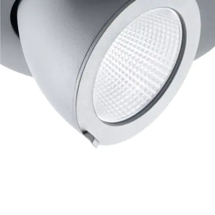 Un apparecchio con design inclinabile consente di dirigere l'illuminazione in modo specifico su un oggetto o una superficie. Ciò può rivestire un ruolo particolarmente importante nei negozi (mettendo in risalto una nuova collezione) o nelle gallerie (accentuando le opere d'arte). Può anche influenzare il comportamento di acquisto o l'interpretazione dei visitatori.