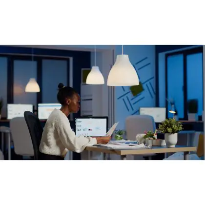 Ogni lampadina e apparecchio di illuminazione ha una classe di efficienza energetica che va da A a G. L'etichetta energetica A è la più efficiente e la G la meno efficiente. L'illuminazione a LED usa la tecnologia più sostenibile. Anche se una lampadina LED ha una classe di efficienza energetica E o inferiore, usa comunque il 70% di energia in meno rispetto all'illuminazione convenzionale con la stessa etichetta energetica. Perché allora l'etichetta è la stessa? Per motivare i marchi di LED a diventare ancora più sostenibili.