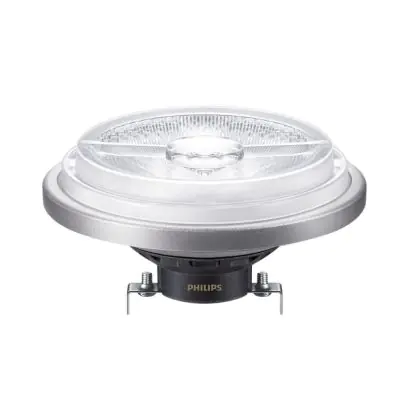 La Philips MASTER LED Faretti G53 AR111 14.8W 950lm 24D - 940 Bianco Freddo | Miglior Resa Cromatica - Dimmerabile - Sostitutiva 75W è la perfetta sostituzione della classica lamapda alogena75W G53 con colore della luce 940 Bianco Freddo. Questa lampadina ha una forma "Aluminium Reflector" (Spot) con diametro di 111mm e gli attacchi hanno una distanza di 53mm l’uno dall’altro. La lampada G53 è molto più sicura in ambienti umidi rispetto le lampade alogene a 230volt, le lampade G53 funzionano a 12V. Perciò c’è bisogno del trasformatore per avere un voltaggio di 12V. Puoi trovare i trasformatori adatti in "Accessori" su questa pagina prodotti. Di quale trasformatore hai bisogno, dipende dal numero di lampade che vuoi connettere. Il nostro servizio clienti puoi aiutarti con la scelta. Passare a LED ti offrirà tanti vantaggi!